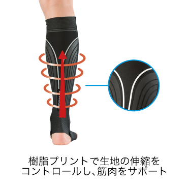 ・段階的着圧とテーピングラインでふくらはぎから足首までサポートするサポーター