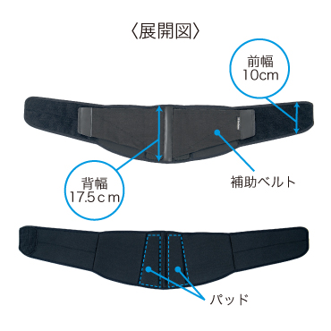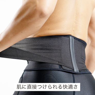ゴムの戻る力(縮む力)を利用して腰を圧迫し、腹圧を高めます。