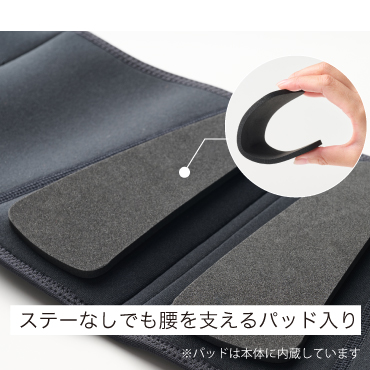 背面には腰を反る動きを制限するパッド入り。