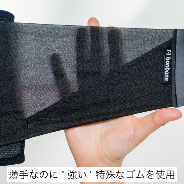 薄手ながら“強い”特殊なゴムを使用。