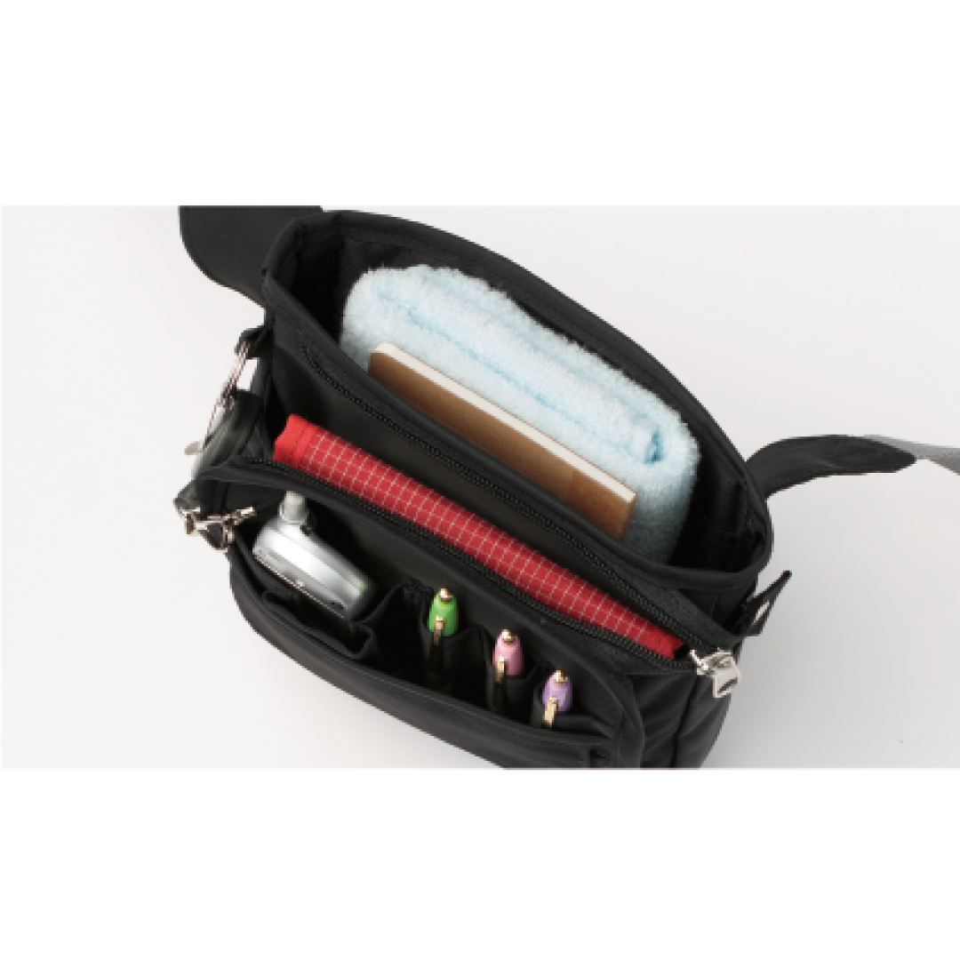 ベルトが緩みにくく、ムレにくいウエストバッグ●カラー/ブラック●素材/ナイロン100%●サイズ/フリー(幅17cm、高さ18cm、マチ4cm、ウエスト最大120cm)