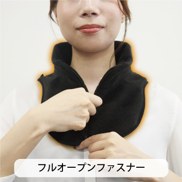 フルオープンファスナーで着脱しやすく、着けることで簡単に首元を温められます。