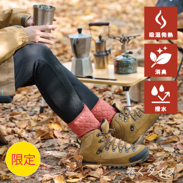 ■製品特徴・様々な服装に合わせられる秋冬おすすめのカラー・消臭性能が高く、ウールの約3倍の吸湿発熱性能を持つモイスケア®を内蔵(東洋紡(株)総合研究所調べ)・面ファスナーで簡単着脱・外側の生地には撥水加工を施しています■サイズ適用周囲:16~29cm(装着箇所の一番太い部分を測ってください。)【全長】 35cm■入数2枚入(左右1セット)■材質ポリエステル 合成繊維(アクリレート系) ナイロン ポリウレタン ■こんな方にオススメ ・外側の生地には撥水加工を施しているためキャンプや釣りなどのアウトドアにもおすすめ・外出時やオフィスでもサッと巻けて足先の寒さ対策に■カラー ブラック、カーキ、テラコッタ