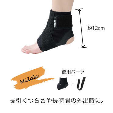 bonbone Adjust足首は患者さまの足首の状態に合わせてサポートが変えられる、パーツでできたサポーターです。■セットに含まれているパーツ・ベース(S/M/Lいずれか)・サイドプロテクション(右/左いずれか)・エイトベルトトラブル発生時にすべてのパーツを装着し、パーツを外していくことで”急なトラブルから自立まで”しっかりとサポートができます。 また、パーツの消耗や洗い替えなどでパーツ単位での追加購入が可能です。■パーツ特徴【ベース】・履きやすいセミオープンタイプ・薄くて通気性のある、グリップ力の高い滑り止め素材を使用・かかと周りに低伸縮素材をテーピング理論に基づいて設計しており、かかと(踵骨)の安定感を高めます。【サイドプロテクション】・2本のベルトに異なる滑り止め素材を使用し、足首にフィットしズレにくい構造・足首を外側から支え、内反方向に制限力を高めます。【エイトベルト】・低伸縮のベルトを採用し、巻き方に応じて自由度の高いサポートが可能です。・シリコンの滑り止めが塗布されており、ズレにくく、サポートが持続します。■こんな方にオススメ・繰り返しやすい足首のトラブルにしっかり対応したい方・シーンに合わせてサポートを変えたい方・2個以上の足首サポーターを使い分けている方