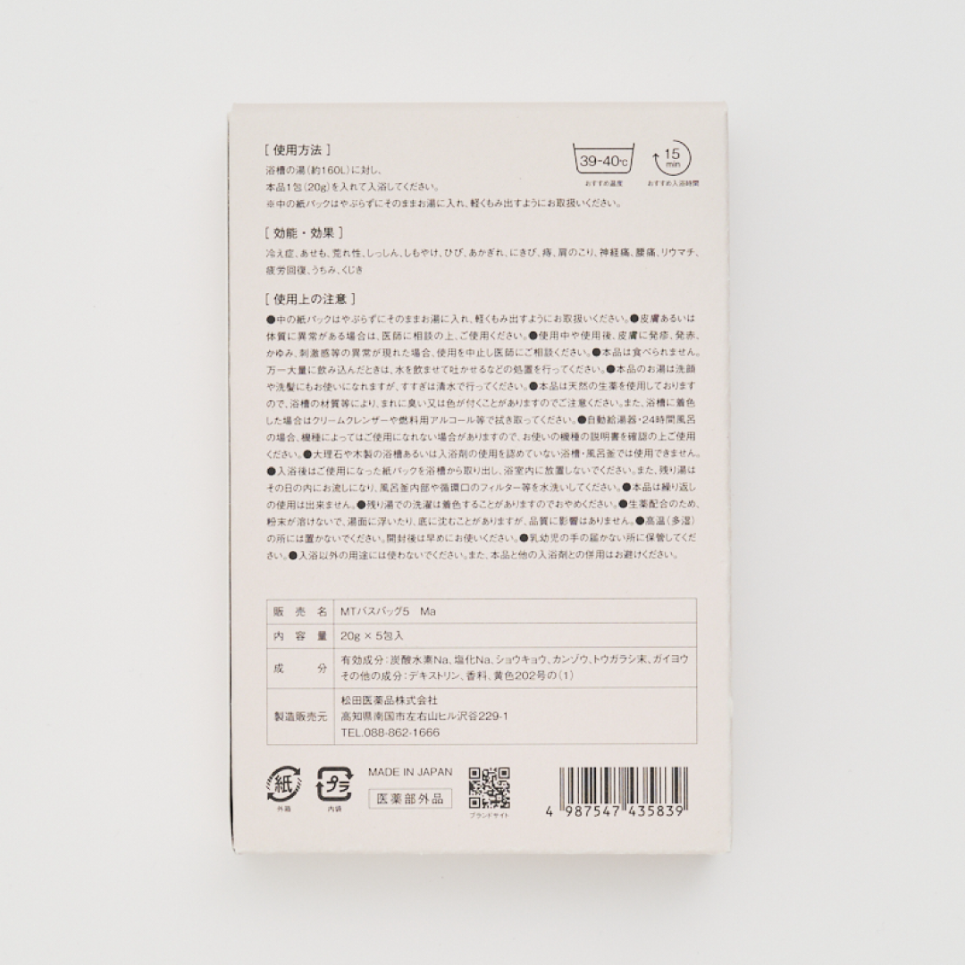 生薬をふんだんに使い、有効成分をバランスよく配合した医薬部外品の入浴剤です。