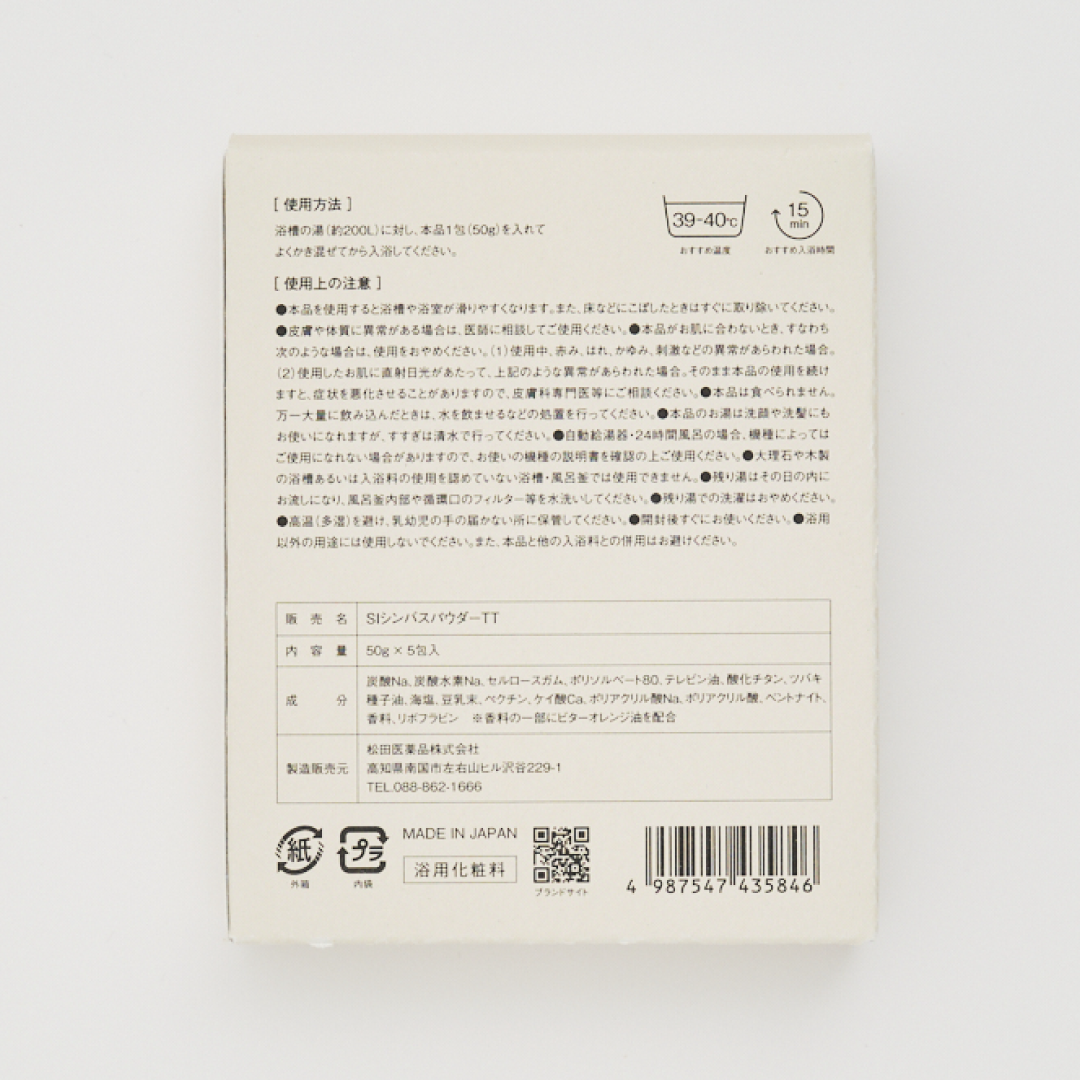 自然の恵みが、身体を優しく撫でてくれるような湯触りも特徴の浴用化粧料(入浴剤)です。