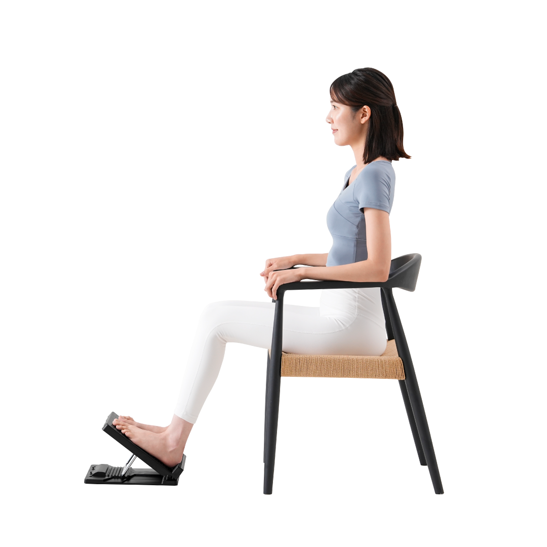●下半身後面の筋肉をしっかりストレッチ ボードの上に乗ってストレッチを行うことで、硬くなったふくらはぎや太ももをほぐします。