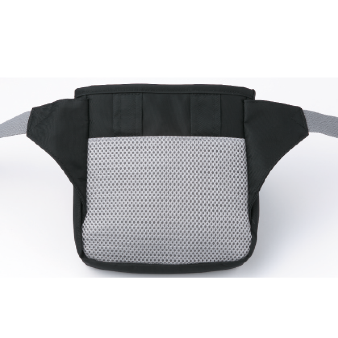 ベルトが緩みにくく、ムレにくいウエストバッグ●カラー/ブラック●素材/ナイロン100%●サイズ/フリー(幅17cm、高さ18cm、マチ4cm、ウエスト最大120cm)