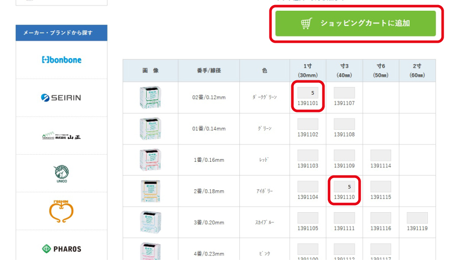 ②数量を入力し、「ショッピングカートに追加」を選択