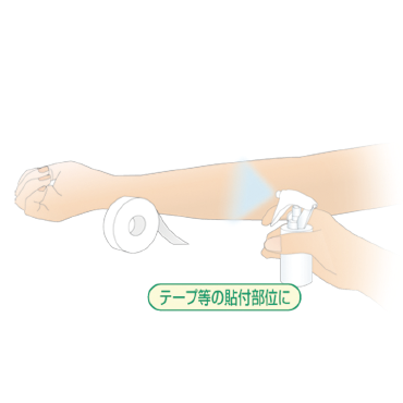テープ等の貼付部位に塗布後テープが貼付できて、剥離刺激も低減します。
