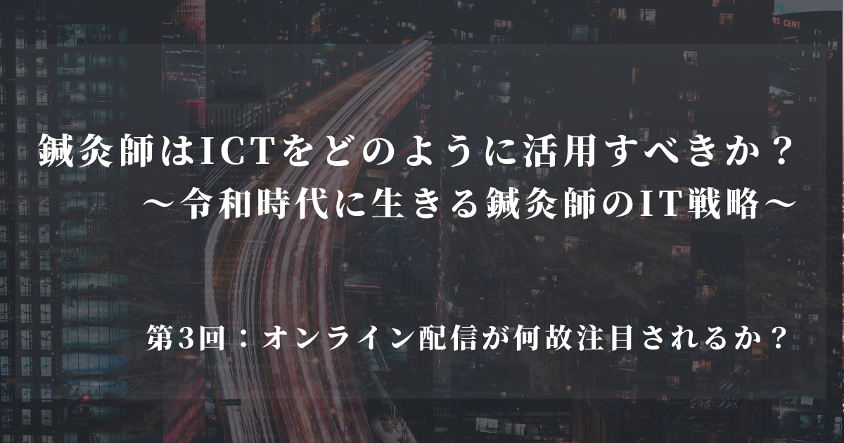 鍼灸師はICTをどのように活用すべきか?~令和時代に生きる鍼灸師のIT戦略~|第3回:オンライン配信がなぜ注文されるか? 伊藤和憲